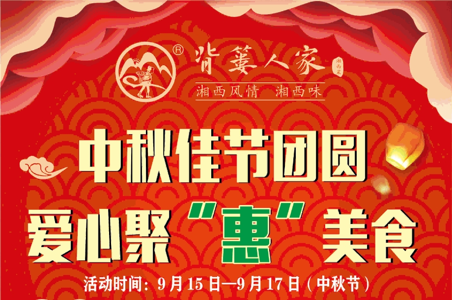 背簍人家 全體員工 在中秋節(jié)來臨之際 祝大家 闔家歡樂! 幸福美滿! 中秋節(jié)團圓相聚 就來 背簍人家 ! 溫馨提示:以上活動由廣告公司提供,如有使用,請聯(lián)系刪除!......